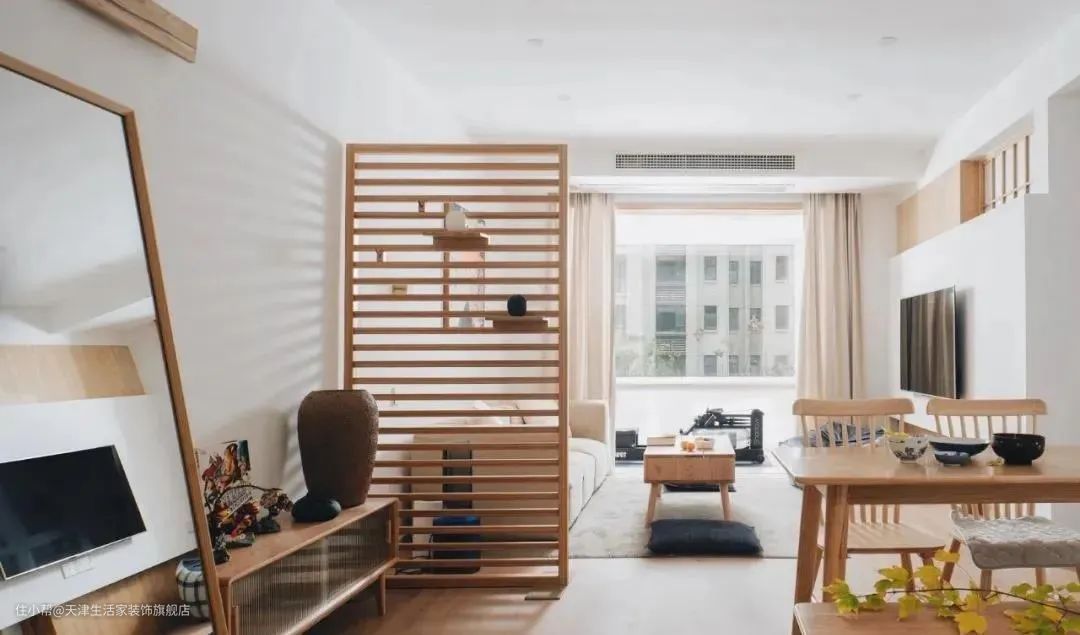 木质栅格隔断也是日式最常用的元素。或者一个木质的框架+一副画,就是一个屏风隔断。
