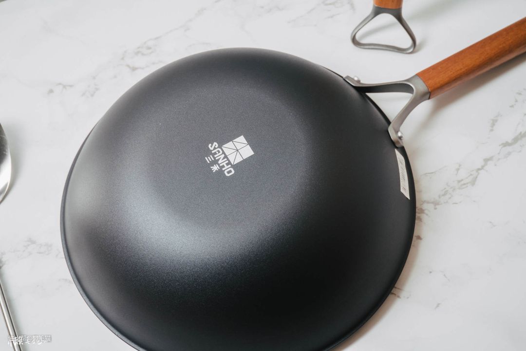 之前一直用陈枝记,最近我老公操作不慎给搞生锈了,我就想选选看有没有不易生锈的无涂层铁锅,于是入手了三禾的这款窒氮防锈轻铁锅。