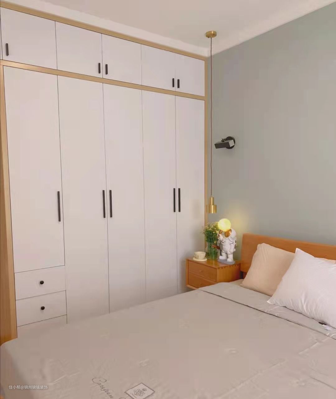 最里侧床头柜一定要特殊设计,可以分上下门板设计,好处就是没有拥堵感,睡觉面向衣柜一侧视觉上会有延伸感,随时还能放手边小物品。