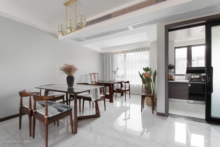 新中式风格的餐厅是以中国传统古典文化作为背景结合现代风格衍生出来的,它几乎没有中式风格的厚重感,而是多了很多现代风格的明亮鲜艳,极富中国浪漫情调。这种风格不仅永不过时,而且时间愈久愈散发出迷人。