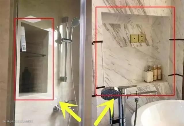 还有一个增加卫生间收纳的办法,就是壁龛,在淋浴区或者洗手池的墙壁上掏出一个壁龛出来,可以用来放洗浴用品,拿取也方便。