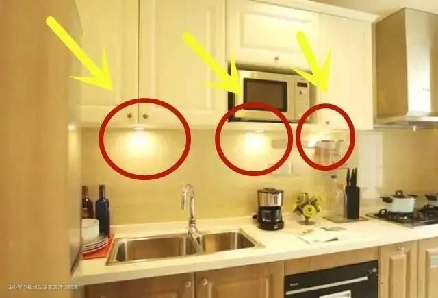 晚上光线不好,做饭时有阴影,切菜做饭都很不方便,吊柜顶部装上一排操作等就可以解决这种困扰了。现在还有免安装式的,直接往橱柜上一贴就可以了。