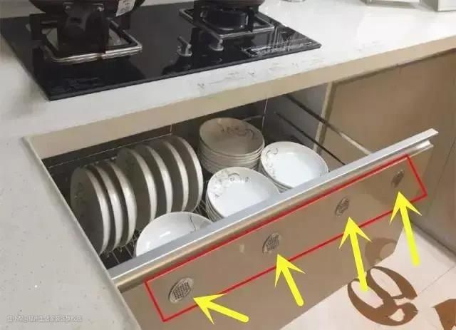 厨房一般都是很潮湿的,记得给橱柜装上几个通风换气口,防止里面的东西发霉变坏。