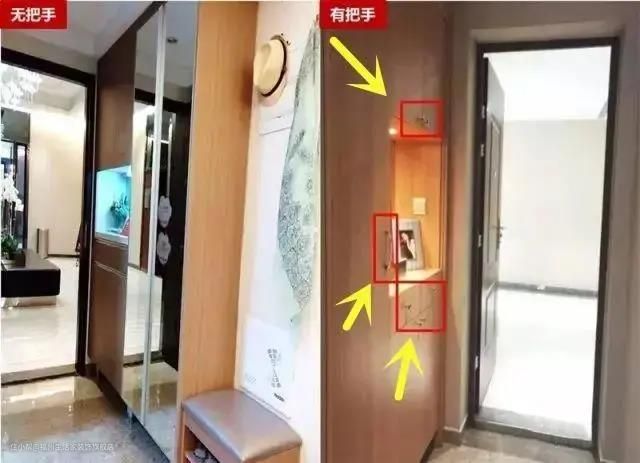 正常进门后第一个见到的就是家里的玄关柜,出于安全角度这种无把手的玄关柜更好,尤其是对于有小孩子的家庭,可以防止小孩子在打闹时划伤。
