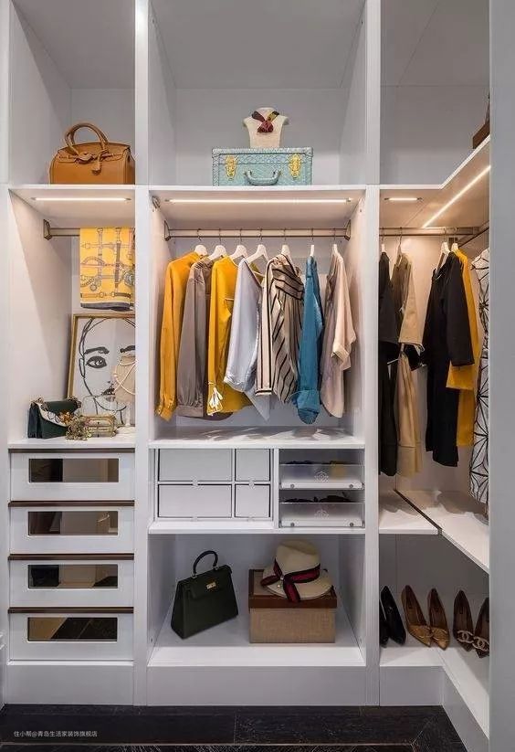但是“先天条件不足”的衣帽间,也可以通过巧妙的空间布局来安排: