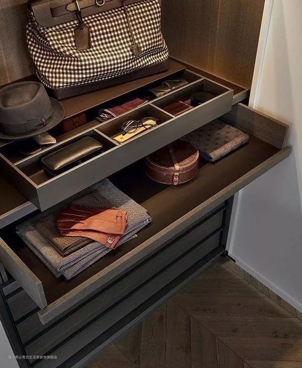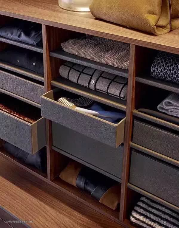 分格抽屉:丝质睡衣、女性内衣等特殊衣物,可以折叠好平放在分隔抽屉里,避免挤压,存放非常灵活。