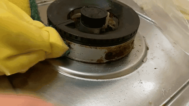 下面是拿开黑色固定圈后灶台边沿的油烟,可能这种程度都不算油烟最多的!