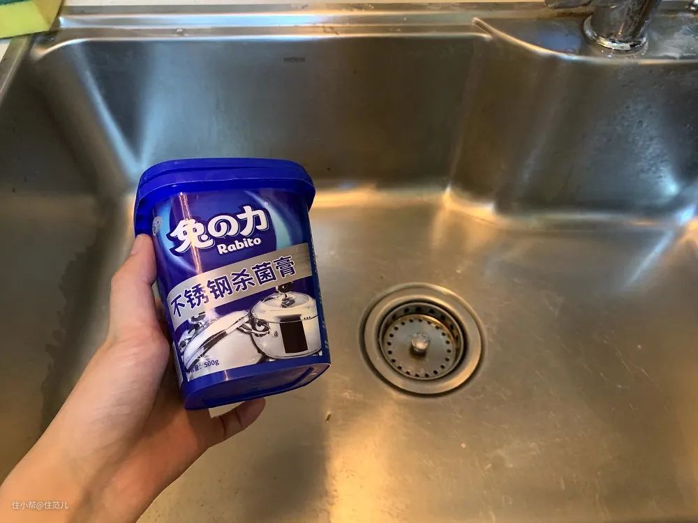 不锈钢材质覆盖了厨房的大部分面积,下水槽、锅碗瓢盆都有,这次我选择了主打清洁不锈钢的兔之力。