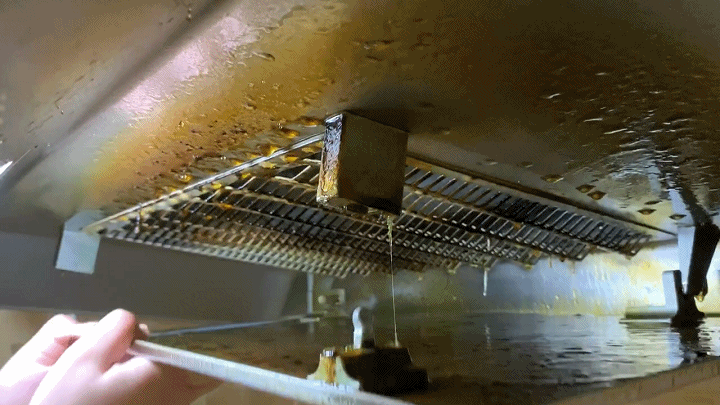 肉眼可见的是,大公鸡一喷上去,那个黑了、黄了吧唧的油立马溶解,网格直接恢复成了原色了!