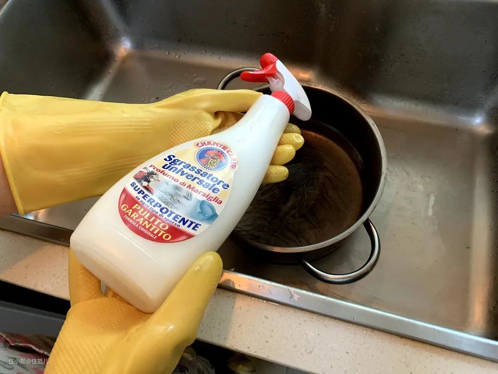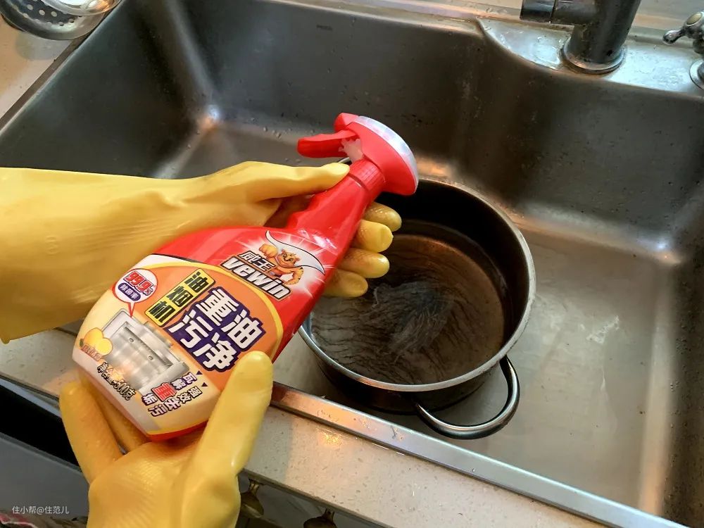 碰到油污比较重的地方,可以先喷上等它自溶解1min后,油污肉眼可见的滴落。
