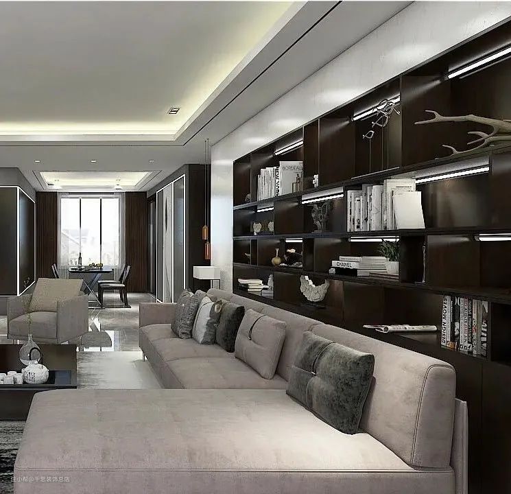 全屋使用由黑、灰、白色组成的无彩系搭配,是一种非常高级的色彩搭配形式,平静素雅。在室内设计中,粉白色、米色、灰白色以及高明度色相,也可以认为是无彩色。