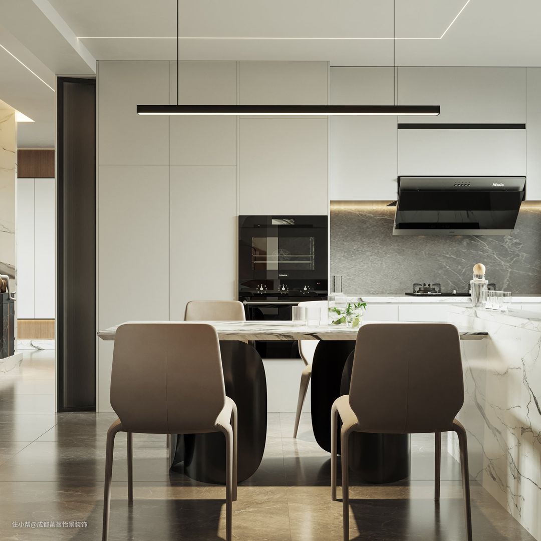 大理石的餐桌台面,给以这个空间时尚大气之间。