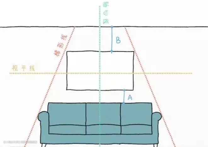 - 注意装饰画与家具之间墙面的留白部分:A的高度<B的高度。