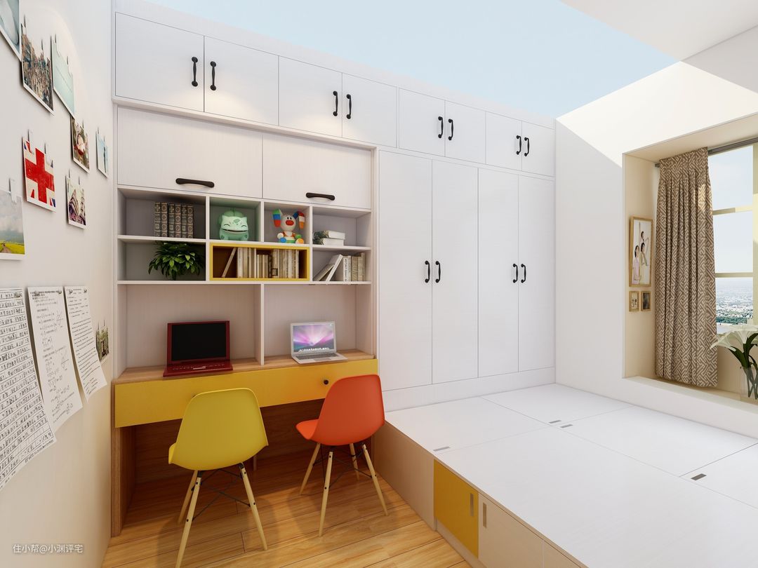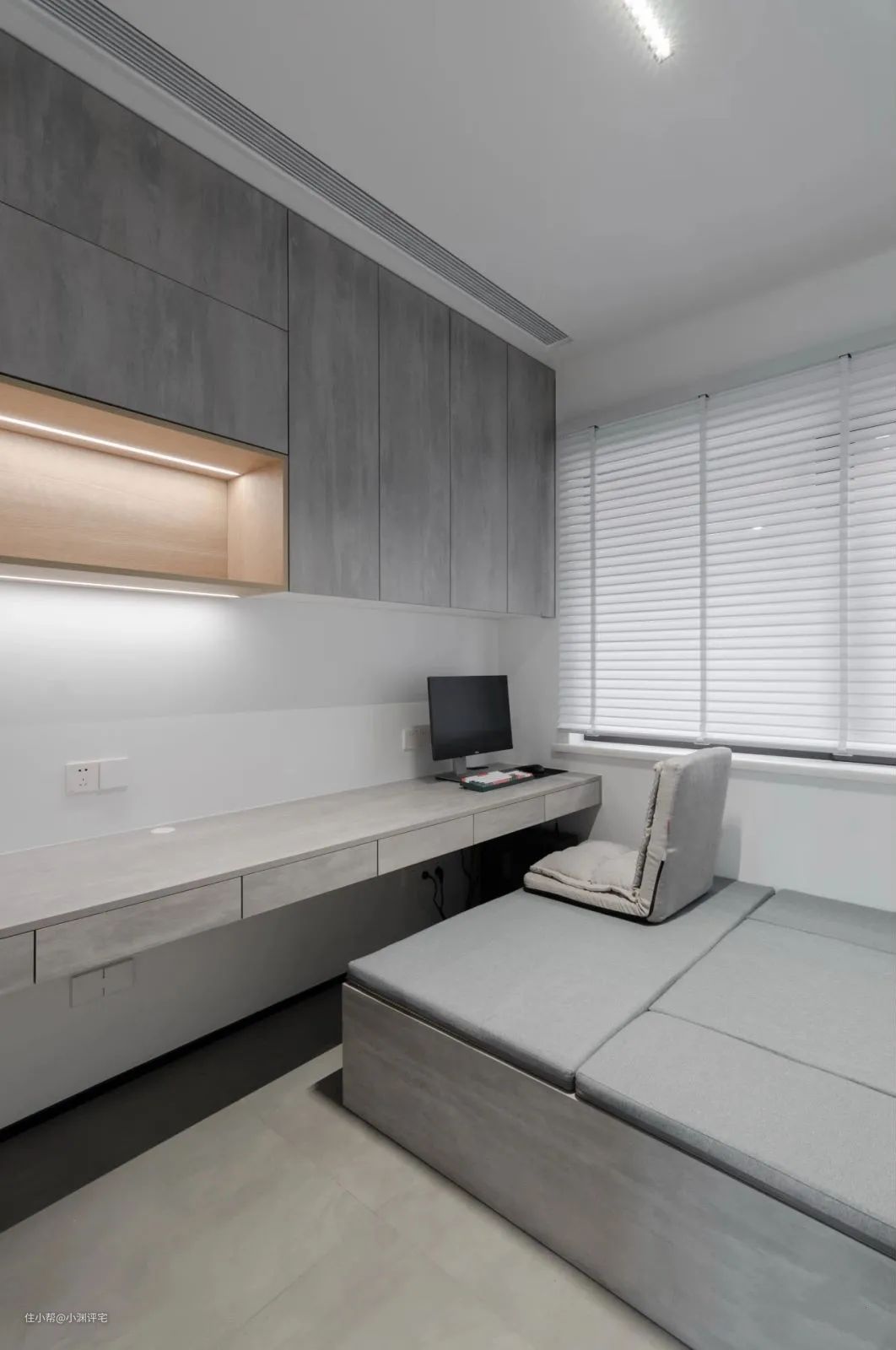 唯一需要注意的,是在做榻榻米的时候要注意预留好床垫尺寸。如果打算铺弹簧垫,柜门最底部距离榻榻米的床板至少要留25ccm;如果打算铺棕垫,这个高度可以降低到15cm。