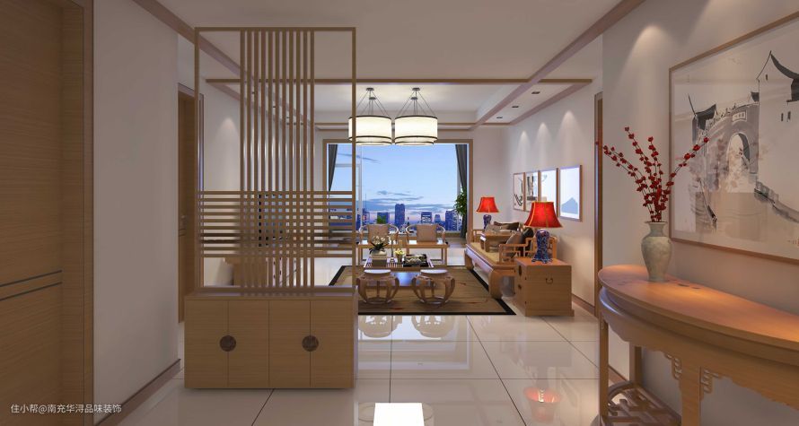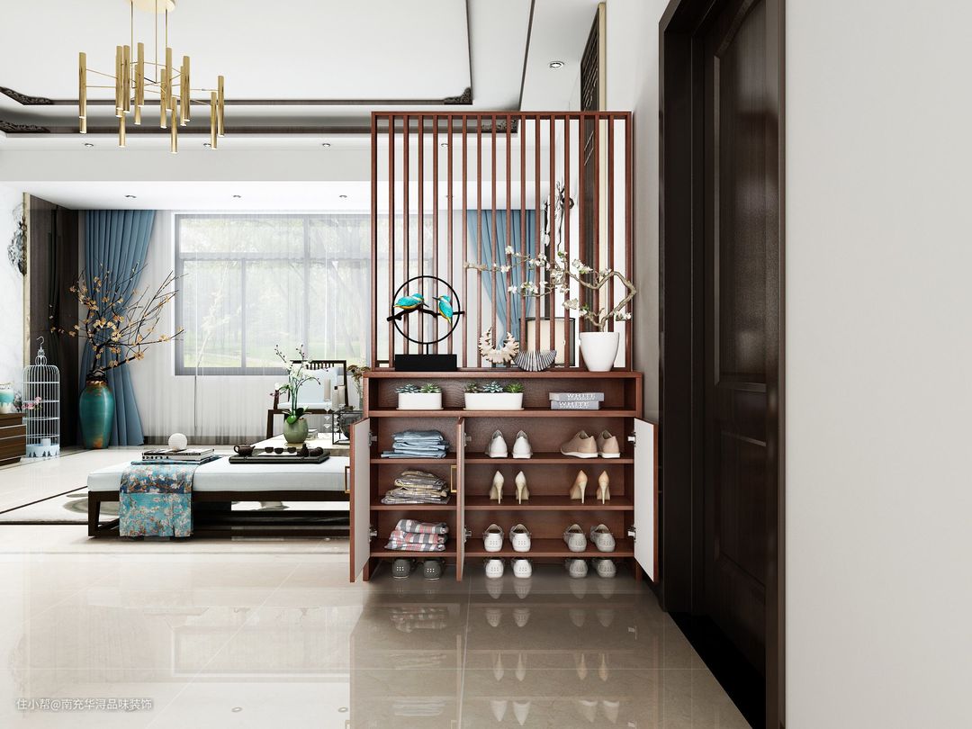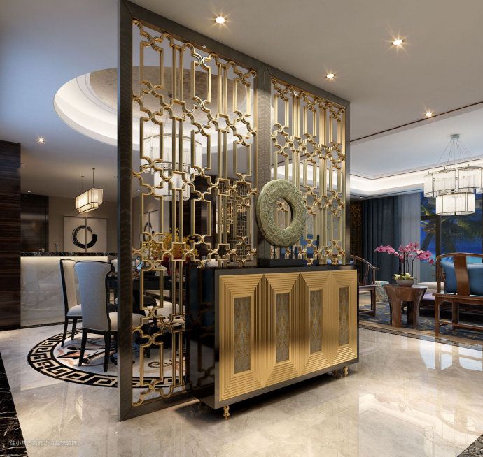 避免客人一进门就对整个居室一览无余。在进门处,用木质或玻璃作隔断,划出一块区域,视觉上形成遮挡,神秘且美观。