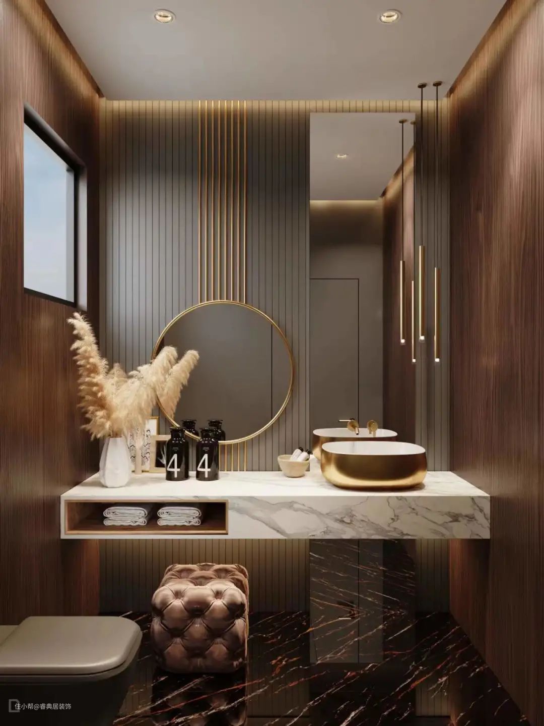 卫生间也可以局部选用花砖进行点缀,这样能让整个空间更具层次感和立体感,但是在图案和花纹上不要过于繁琐,不然很容易产生眩晕。