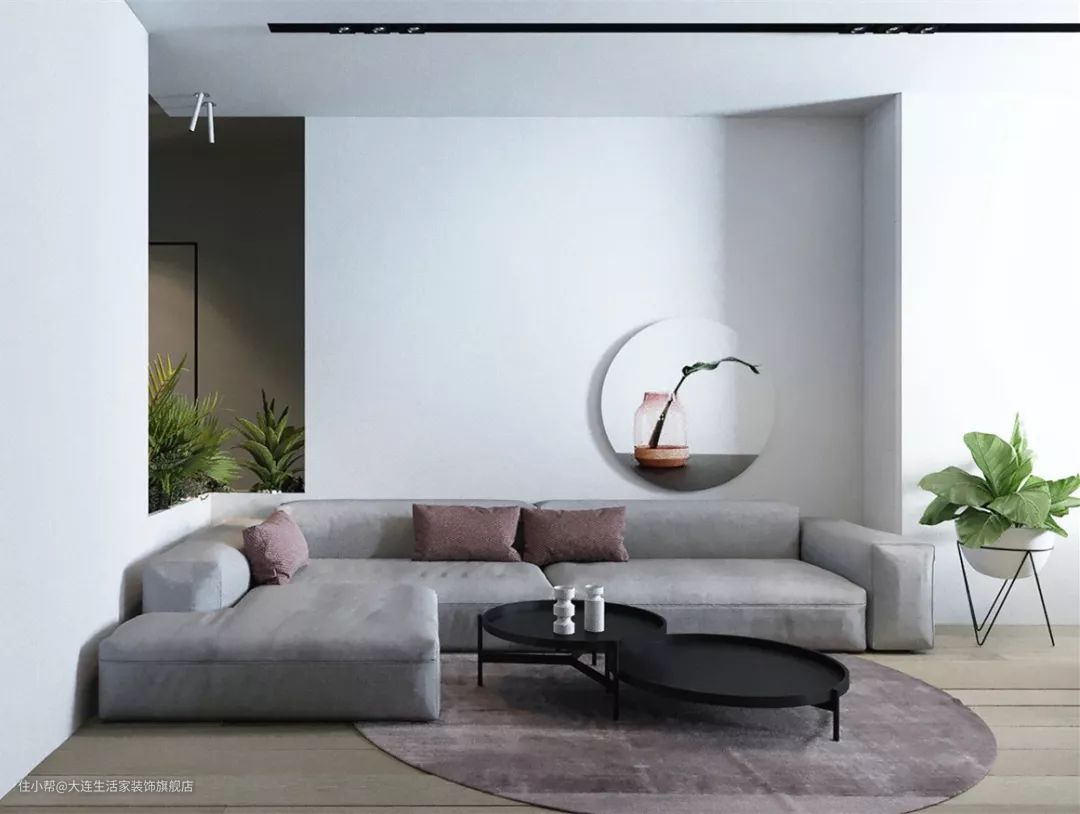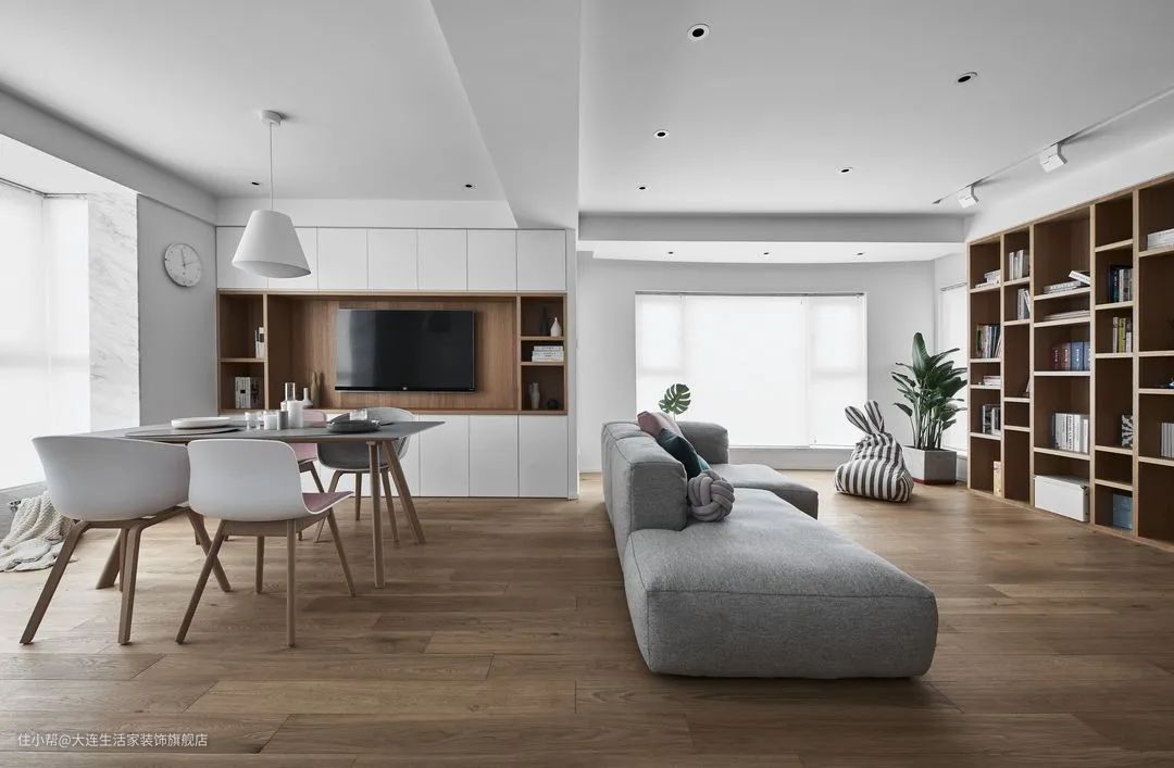 竖厅受空间限制,一般都是电视和沙发靠墙,中间摆个茶几,相对中规中矩。而横厅宽敞得多,电视和沙发可以不靠墙,多出来的空间可以进行更丰富的设计,空间设计更加多元化~