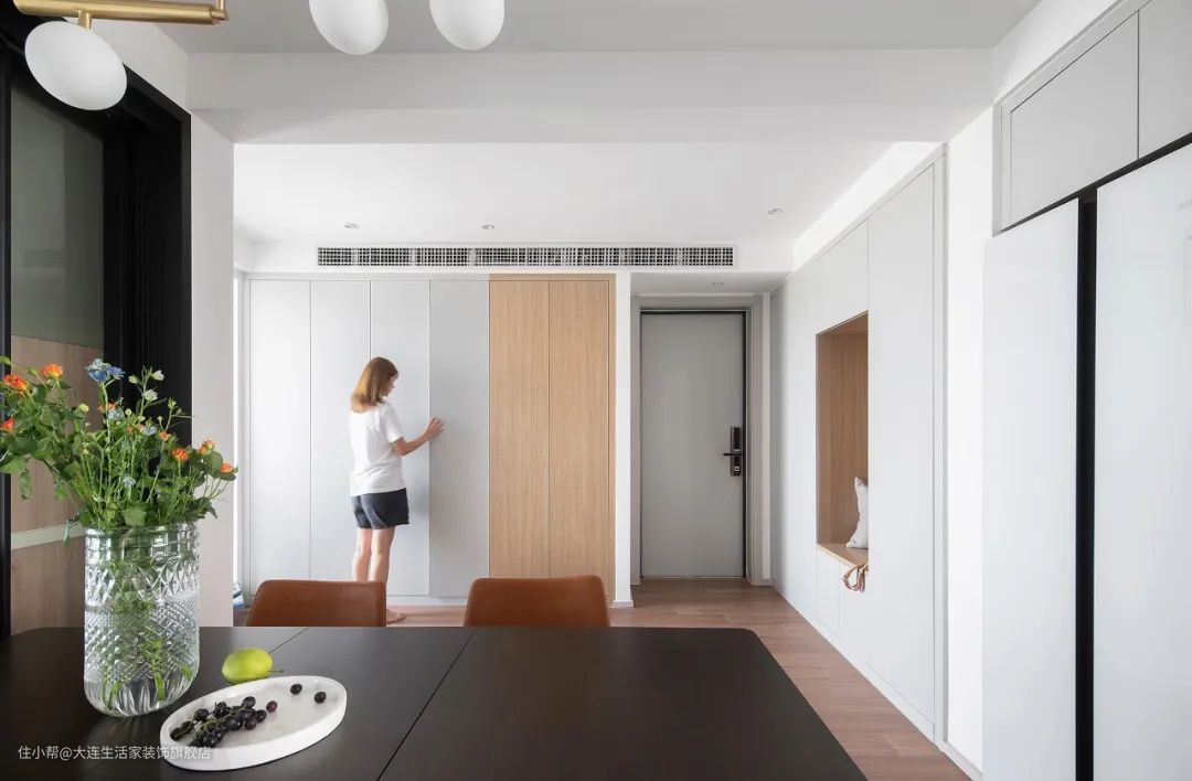 比如沙发靠着墙,就不容易翻倒,对有小孩的家庭来说是较为安全的。而室内收纳更是如此,更多的承重墙可以供我们放置更多的收纳挂钩,隔板,墙上柜,室内也会更加尽然有序。
