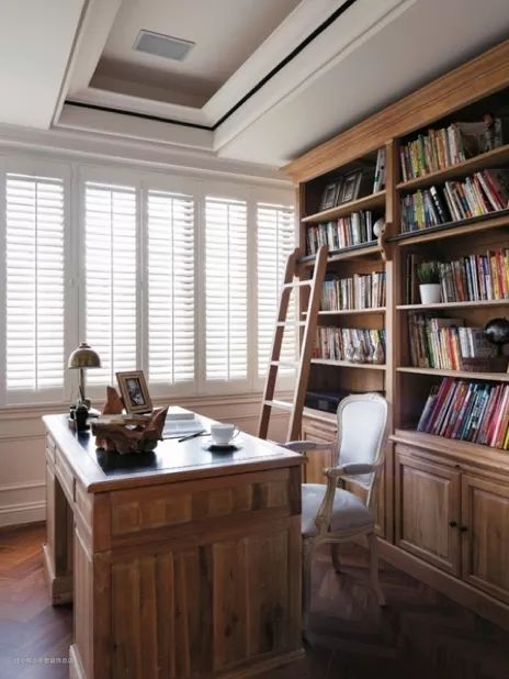 书房一切皆为静,在这方寸之地,疲惫的灵魂可以得到诗意的栖居。以天然竹木为原材料的“竹帘”、“木百叶帘”是书房的首选,颜色上建议以淡绿、淡蓝等颜色为主,图案简洁、淡雅、清新,容易让人放松。