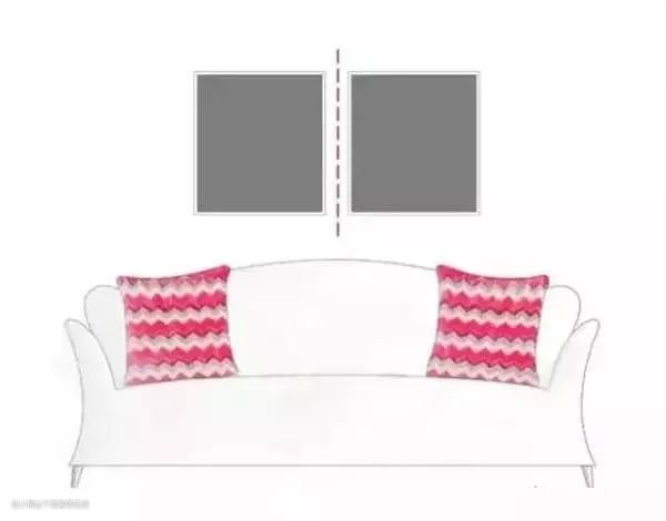 一般多为2-4幅装饰画以横向或纵向的形式均匀对称分布,以中轴对称的形式进行装饰画布局,往往赋予人们视觉与心理上的宁静和谐之美。装饰画内容最好选择设计好的固定套系,整体搭配效果更令人赏心悦目。