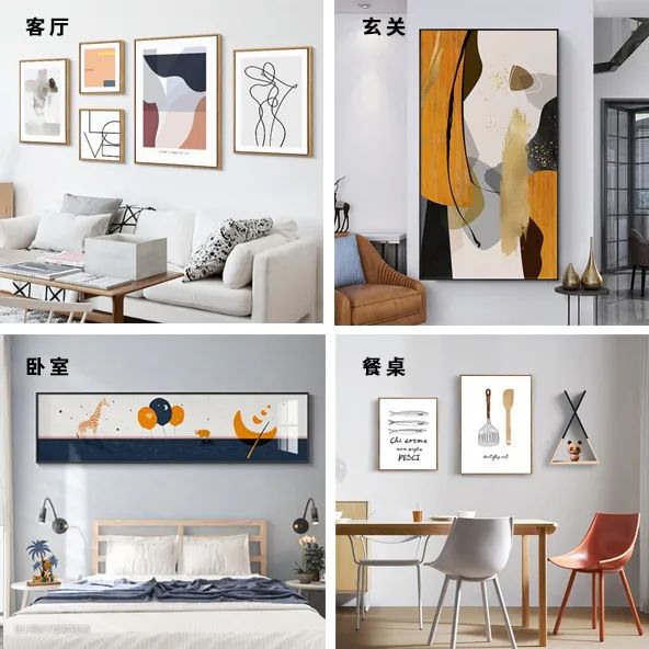 ①装饰画高度:画面的中心与人站立的视线最好平行或稍低点,这样能起到较好的吸睛效果。