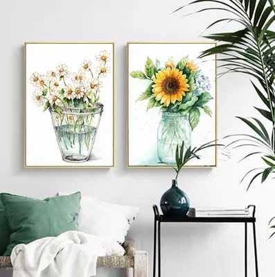 ③若装饰画前方有摆设物,可根据摆设物决定挂画高度,一般要求摆设的工艺品高度和面积不超过画品的1/3 为宜,并且不能遮挡画品的主要表现点。