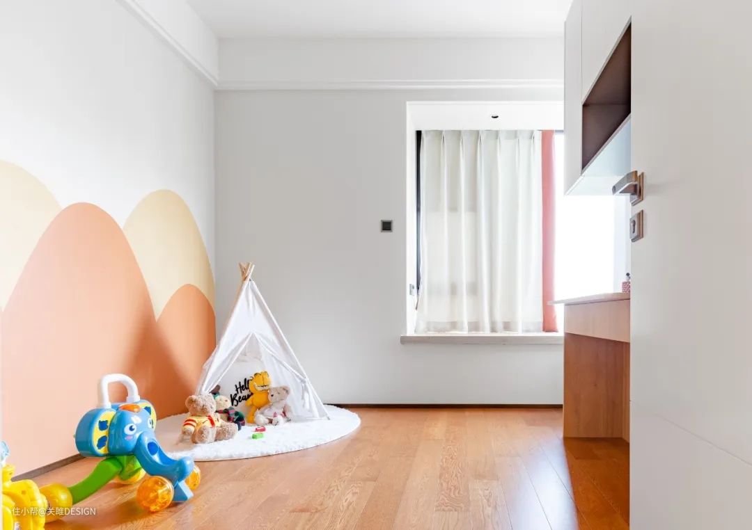 ▲儿童房也是适合拼色墙的空间,用简单的颜色做出童趣的感觉。可以提升他们的创造力与想象力。