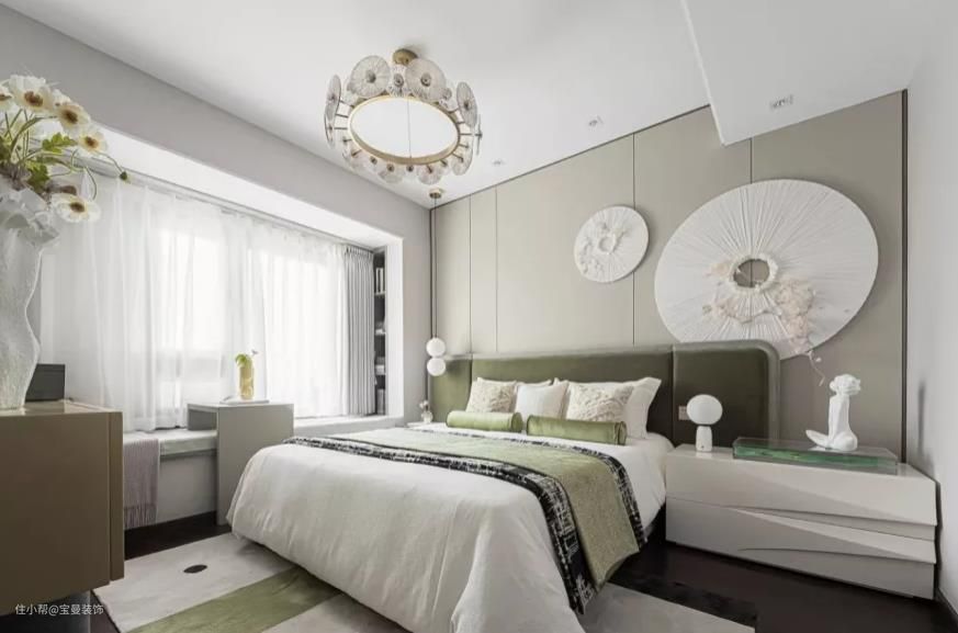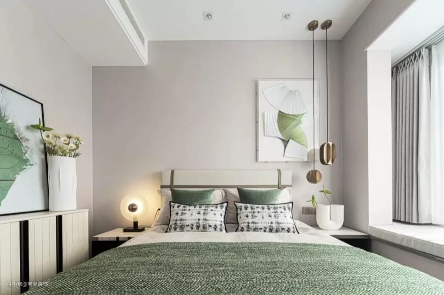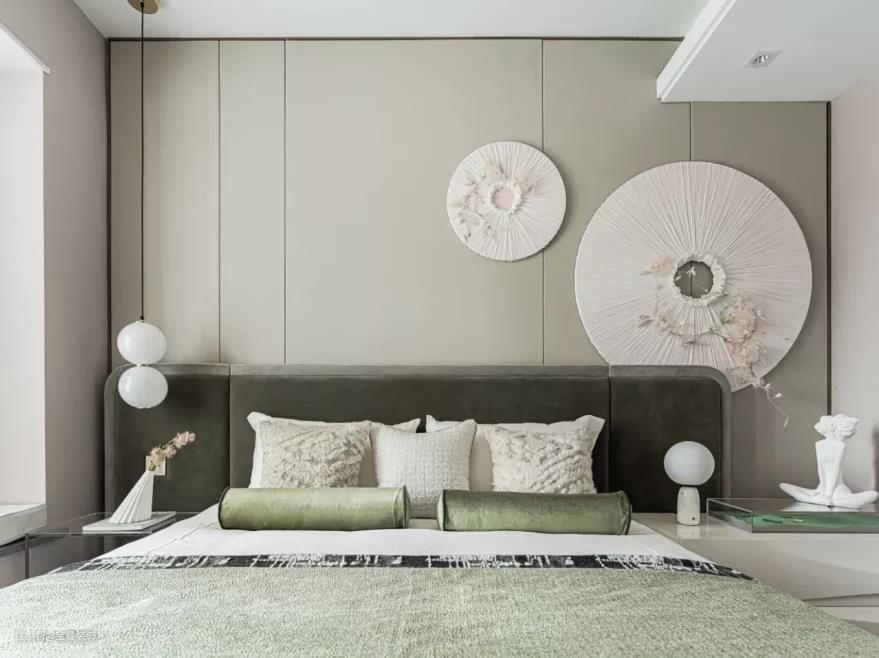 卧室空间的情绪,既是安静的,又是温和的。降低了色温的绿色展现出低调的隐退效果,将自然光分解柔化,显得轻盈,柔和。