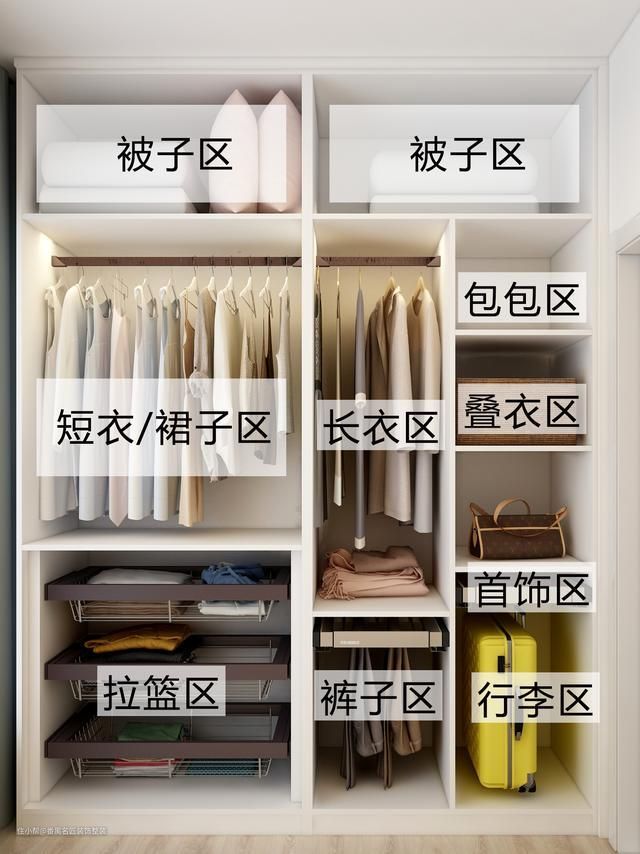 最后,不管是对于挂衣区、叠放区、还是各种五金的搭配,一定要在定制柜子之前,让专业人士设计一下,或者是自己好好按照上面的方式好好考虑一下自家的需求和详细的功能划分,把有限的空间合理的利用。