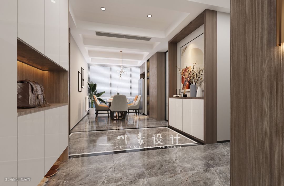 首先常见的一个是入户处走廊,这种户型通常会设计出独立门厅,而走廊就变成了入户与门厅的缓冲区。