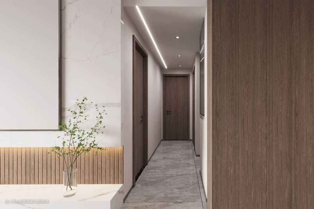 客厅的布局简单大气,白色大理石的电视背景墙,搭配上木饰板的沙发背景墙,用木材的软度来综合石材的冷硬感,让空间得到综合,没有安装电视机,而是采用投影仪,更能满足当代人的使用习惯。