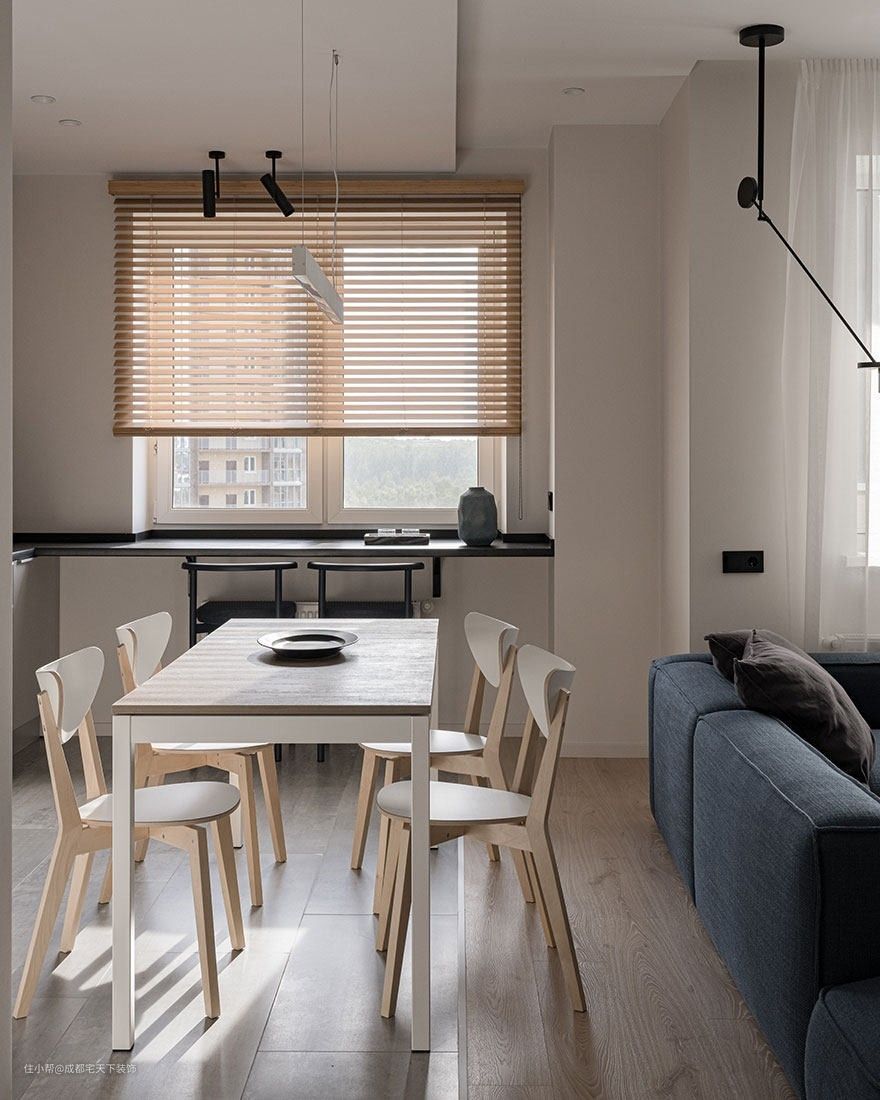 故此女主就把客厅、餐厅、卧室的吊顶灯都换为了风扇灯,风速可以调整,并且也不会可以直接对着人吹,非常清新舒服。