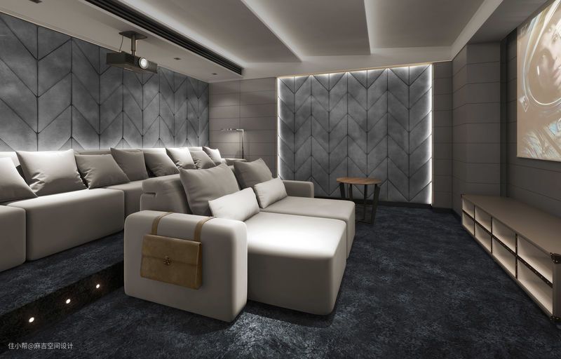 3.家庭影院的墙壁一般都会使用隔音材料,看电影的同时也不会对其他家庭成员有什么影响。还有一点,家庭影院墙面装修切忌使用亮面瓷砖,光的反射会降低投影效果。