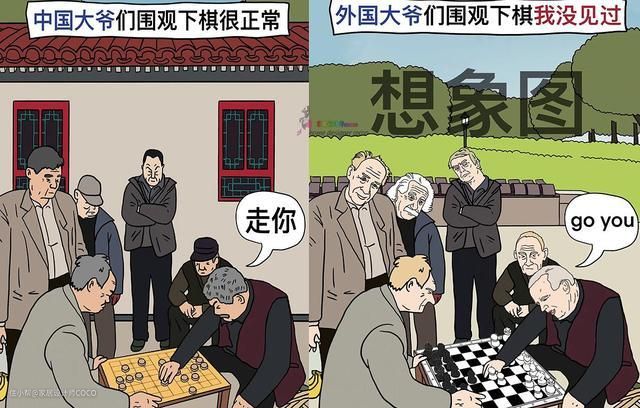 你看到中国大爷下棋,一群人围观很正常,但是看到外国大爷下棋,一群人围观就会觉得很奇怪。