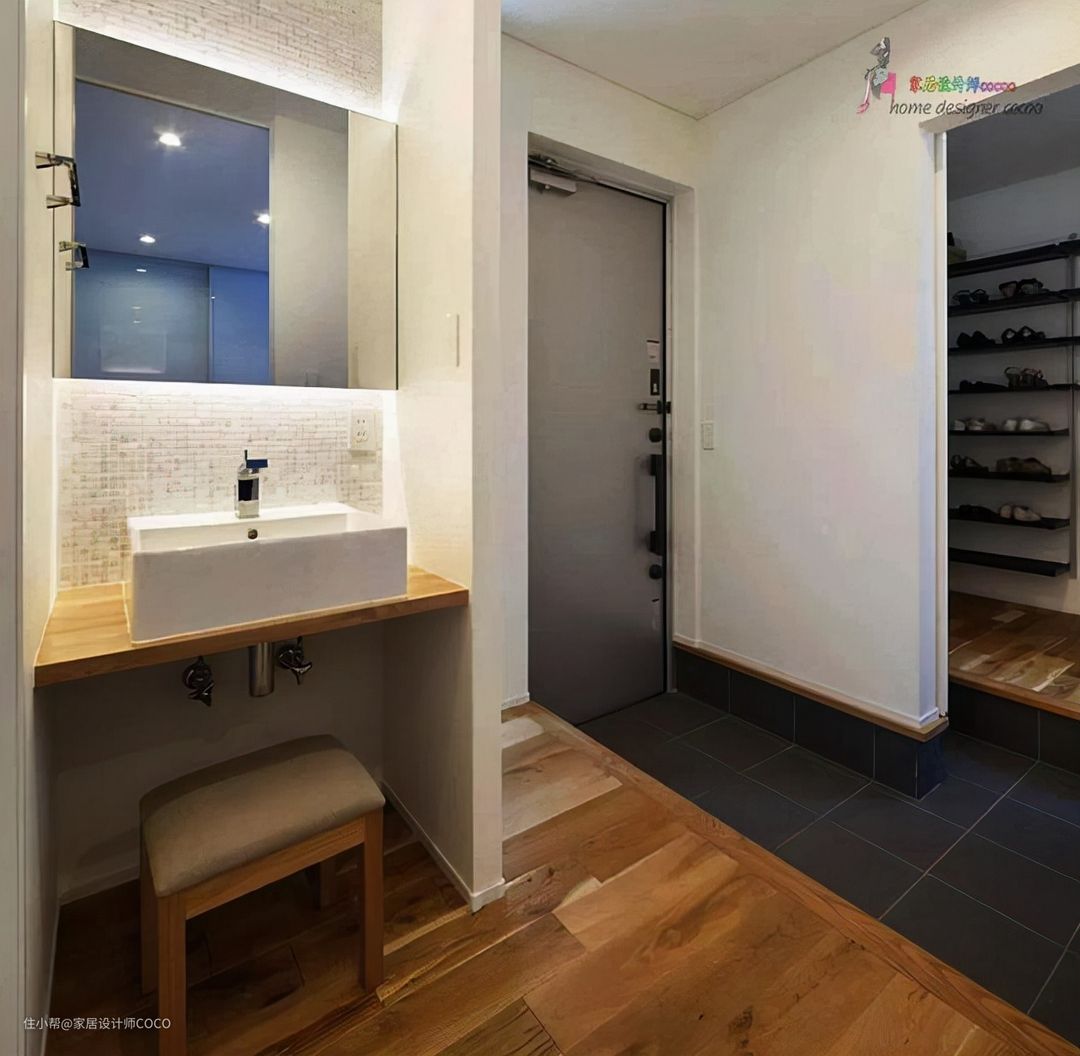 在日式的家居设计中,越来越多的家庭选择在玄关区域增加一个洗手台的功能区。