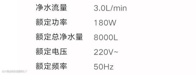 总净水量,也是一台净水器必标的参数,和滤芯寿命一样,决定了净水器的使用时长。不过总净水量是一个结果性质的参数,而非直接变量,就是说它是由滤芯决定的。额定总净水量,是衡量一个净水器的整体性能和使用寿命的重要指标。