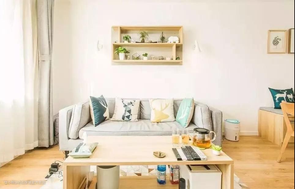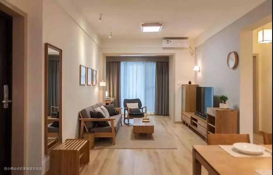 与北欧类似,日系风格中原木色家具搭配灰色,体现出稳健的效果。