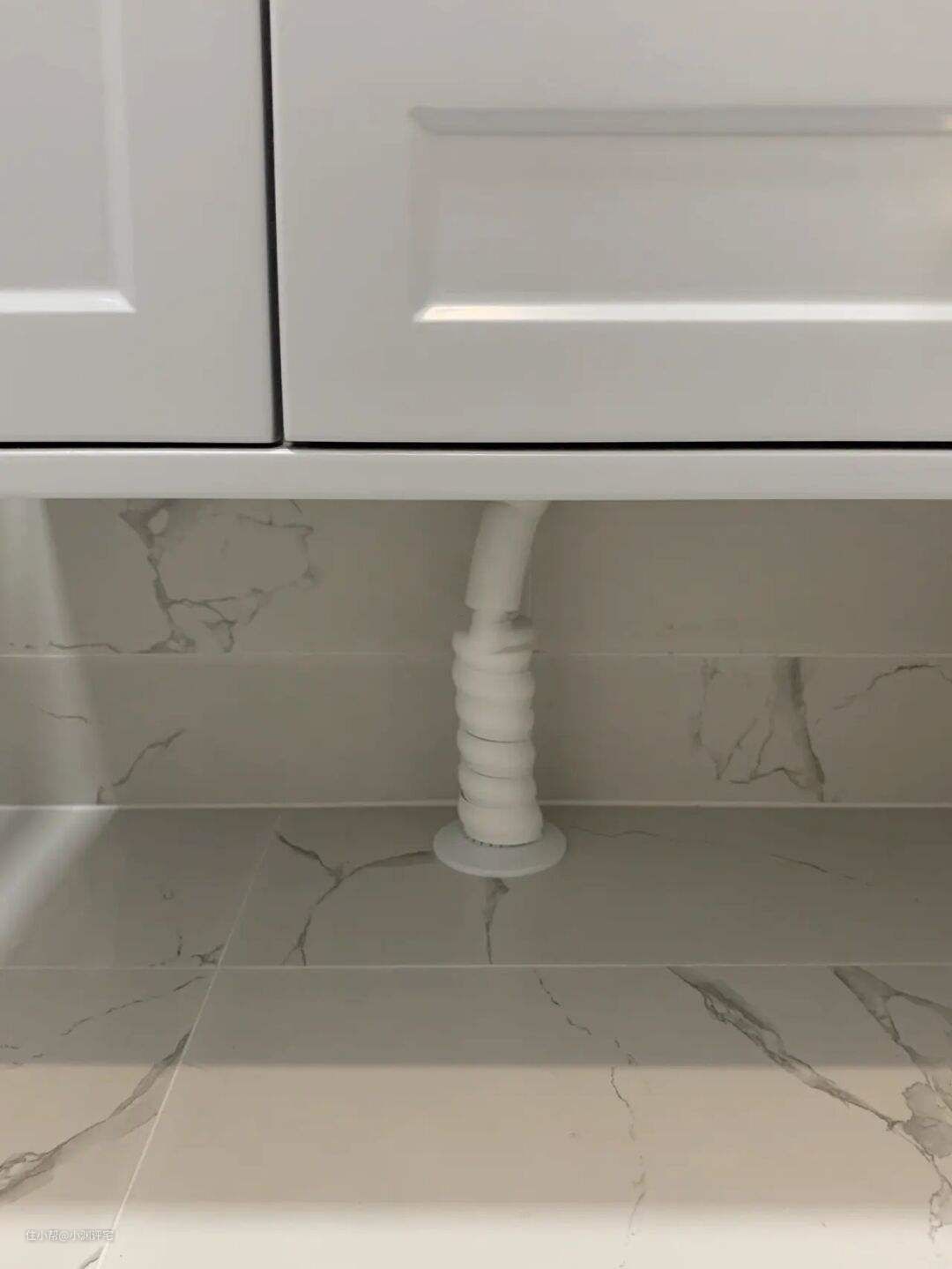 但很多浴室柜下面,会有一节管道,就像这样▼