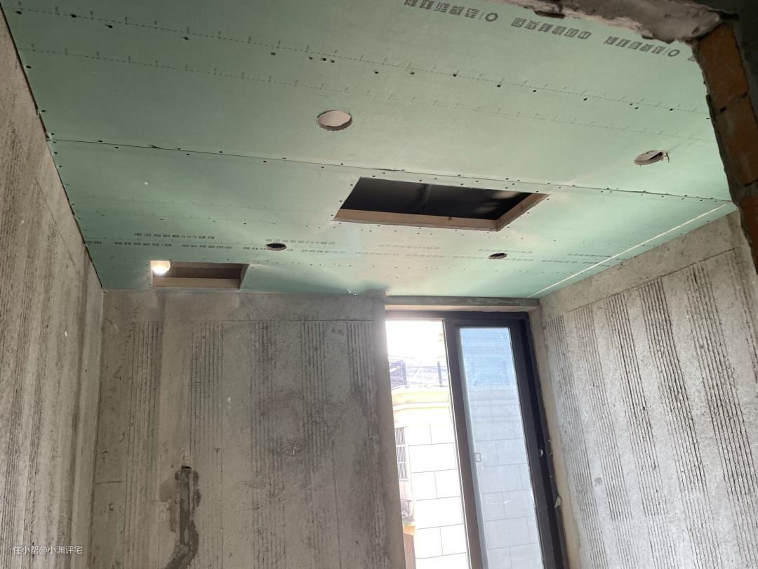 而且天天祈祷楼上不要漏水,一旦漏水,石膏板吊顶是必须要完全拆掉的——就算是预留了检修口也没有,那个口太小了,从这里进去根本接触不到整个天花板。