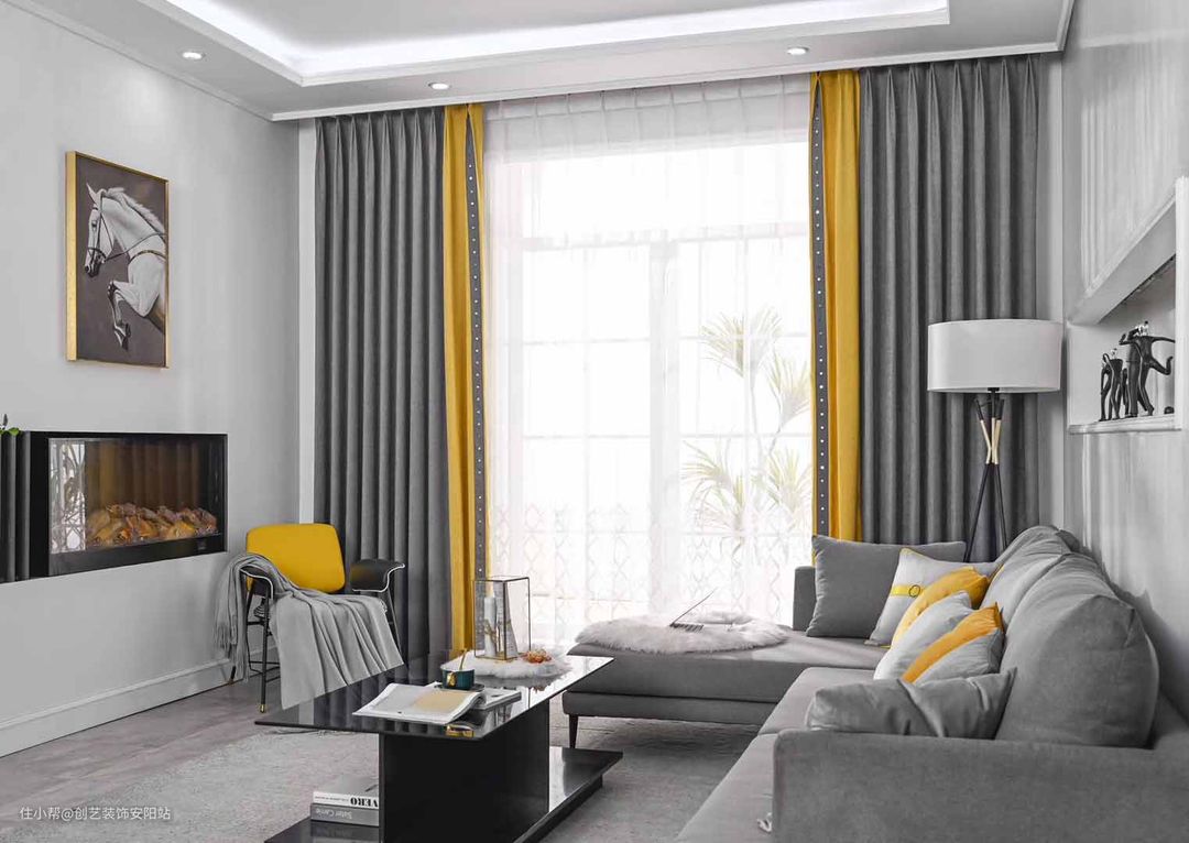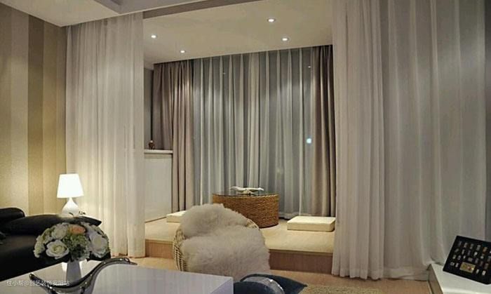 如果天花板有做吊顶的话,在窗户的位置留出一个凹槽,在凹槽内部安装轨道和窗帘。