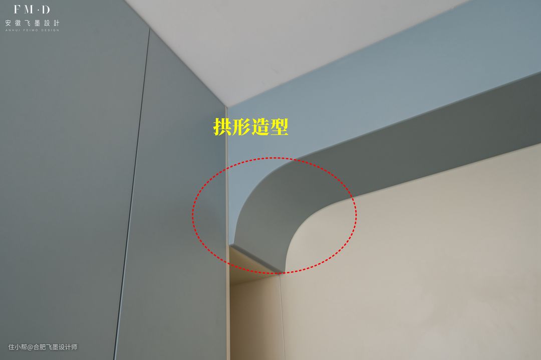 顶部的拱形造型则是由工厂制作一体成型的,搭配下方的挂衣区,整个玄关不仅设计亮点十足,想要的功能也都是配备齐全的。