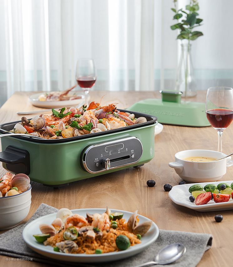在此就不得不提——多功能料理锅,一个锅搭配N个盘,制作不同美食,看着就很有食欲。可以说是学生党、租房党、懒人、独居人士、小家庭的必备锅具。