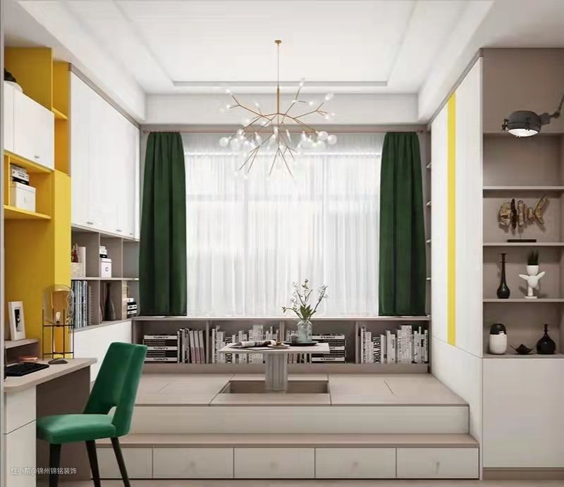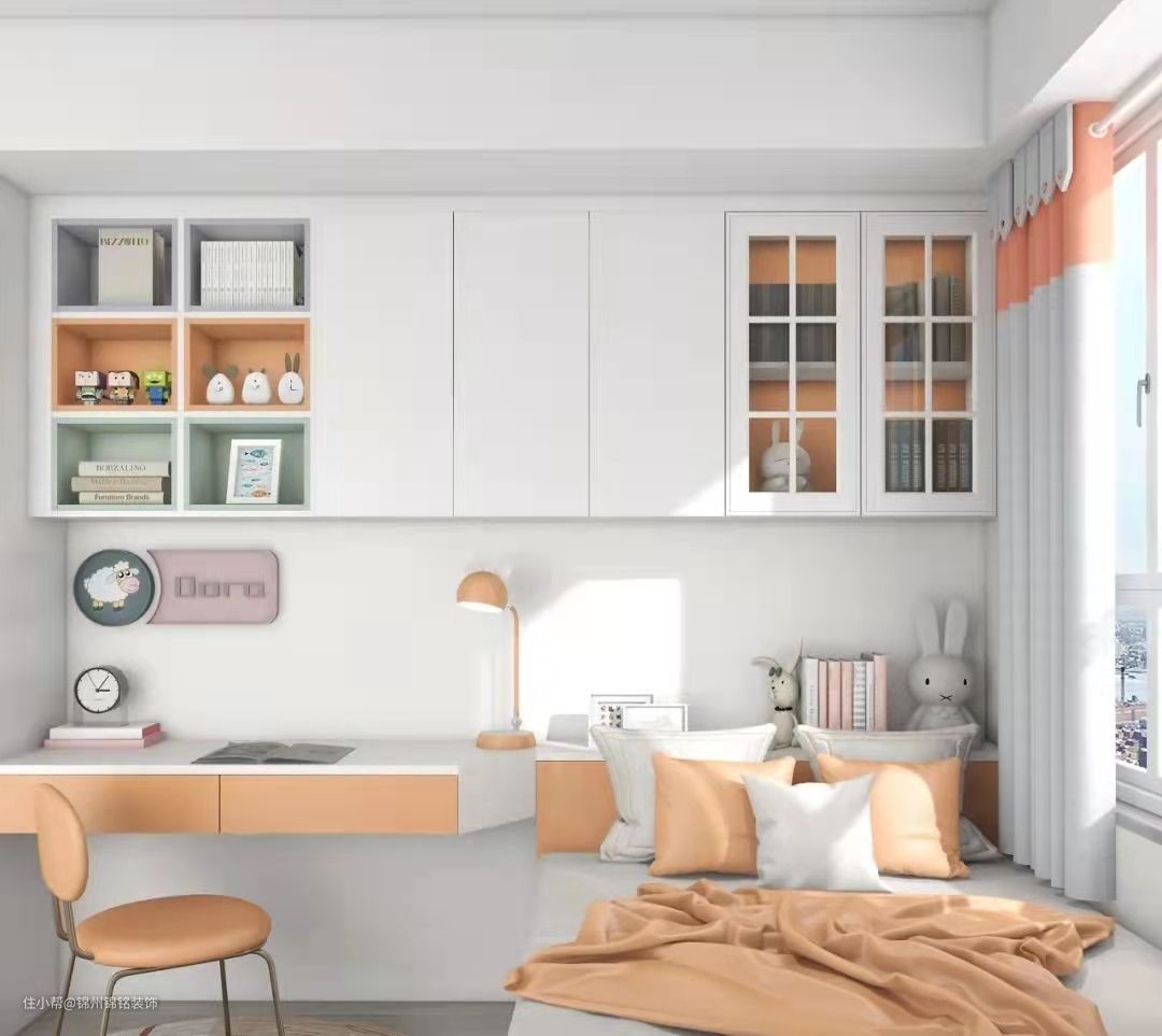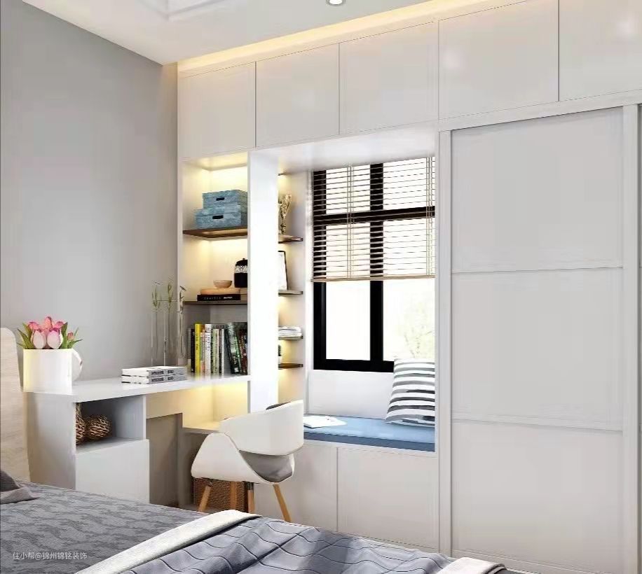 飘窗柜、衣柜、收纳柜、书桌、梳妆台可以根据需求和实际户型自由组合设计,不仅拥有超强大的储物能力,还能同时满足办公、梳妆、休闲等需求。