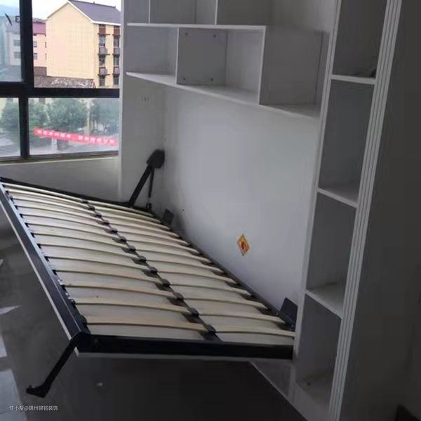 如果非常看重卧室的活动空间,还可以将占据大面积的床做成下翻式或侧翻式,白天不睡觉的时候就把床收起来,腾出大片空间,连蹦迪都能满足。需要睡觉时,轻松一拉就能把床放下,简单易操作。