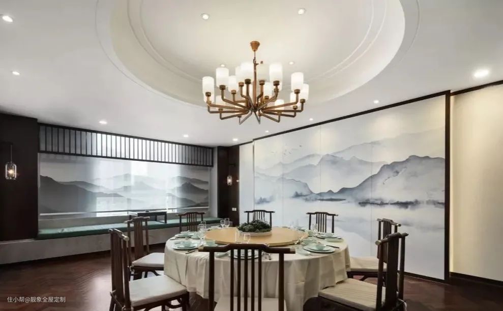 其次是要看整屋的装修风格,一般圆形餐桌多用在中式、欧式、现代中式的装修中;餐厅吊顶是圆形,最好选择圆餐桌与之呼应。