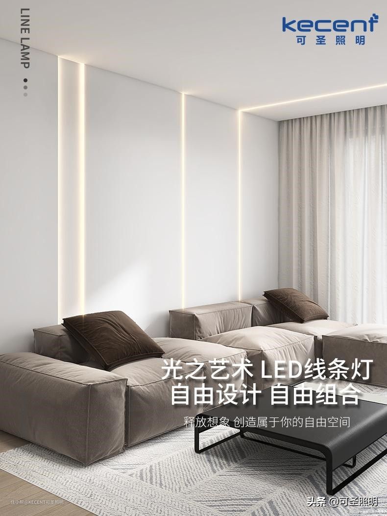 当然了,在选择LED线条灯时,我们除了要留意它的款式,也要关注产品的品质,比如关心下它的灯槽、灯带、面盖等多方面的信息。这边建议,要选择在防锈、耐磨、抗腐蚀上效果更佳的加厚铝材灯槽,和通过“美国能源之星”光衰测试的安全低压灯带,还有透光率更高的面盖,以期达到“1+1+1>3”的高品质效果,而这样的LED线条灯,在KECENT可圣照明的小程序商城与京东、天猫旗舰店都能找得到。