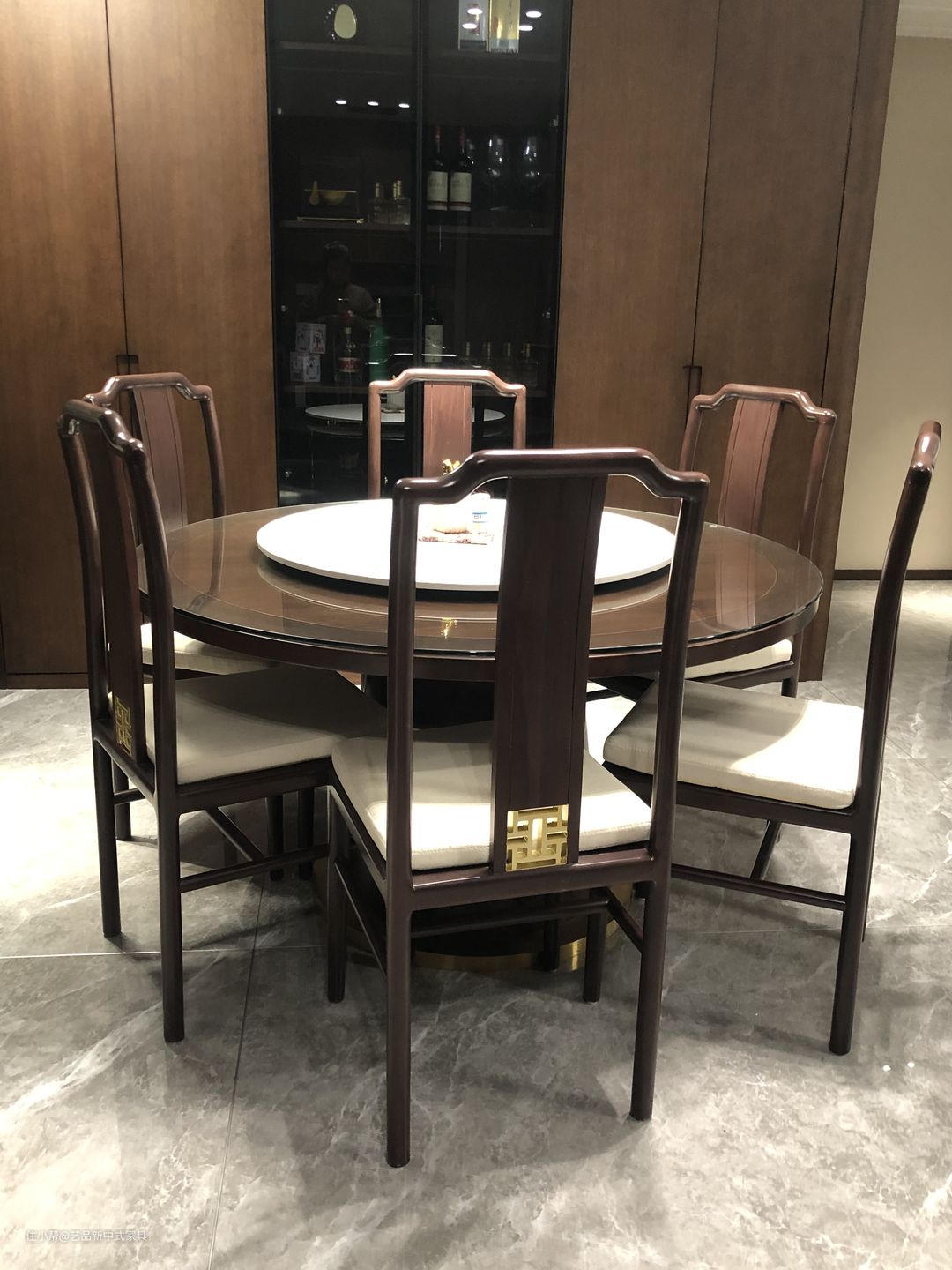 新中式风格餐桌是圆形的,而且还有有一个转盘,方便平时我们夹菜,这也是传承了中式的简单方便的特点而设计的。新中式风格家具传承了中式的优点,又融合了现代的元素,新中式风格家具诠释出一种简单的生活节奏。