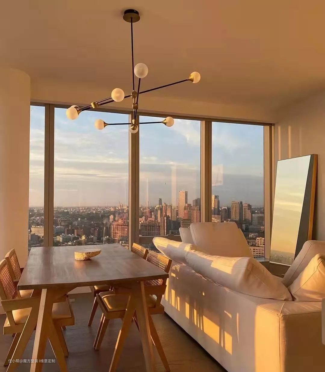 在冬天,客厅就如同黑夜一般,这时候落地窗就起了很大的作用了,一面整洁干净的落地窗,能把窗外一切的风景都带给你。