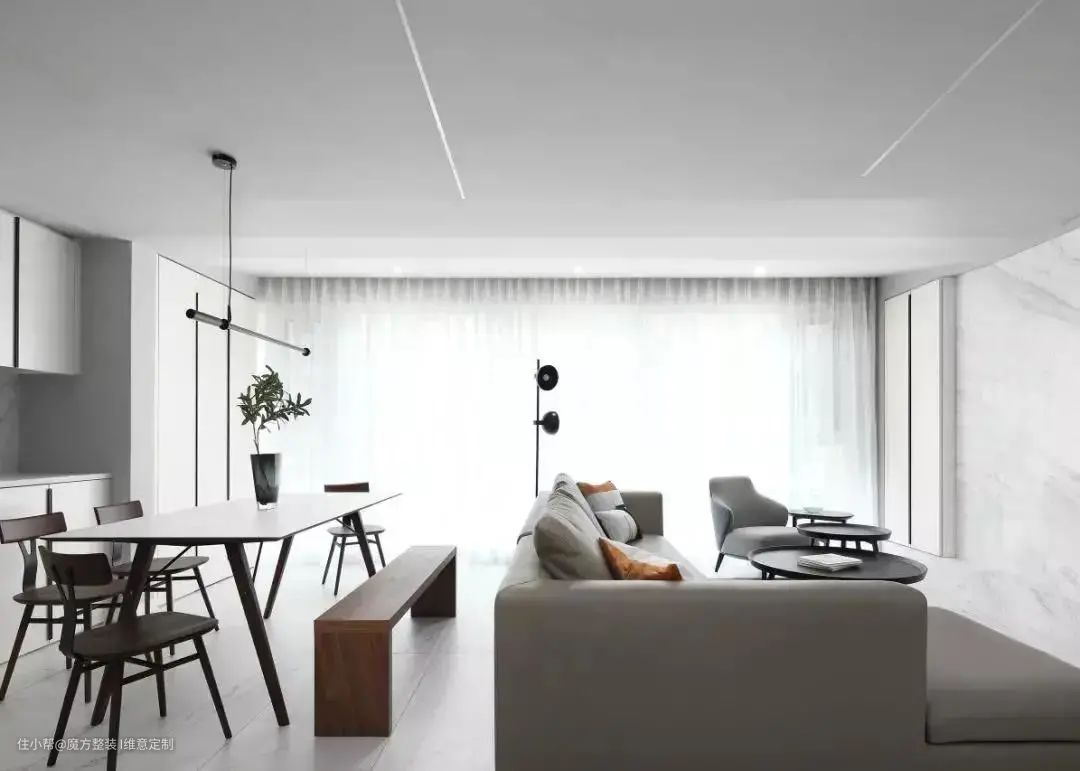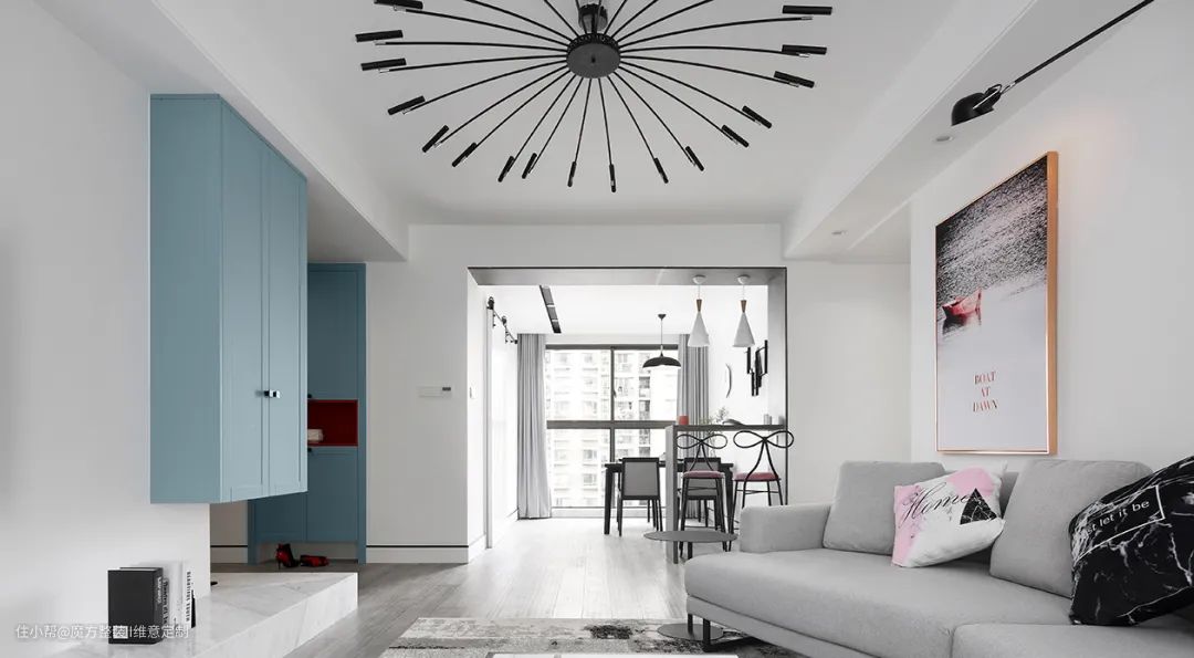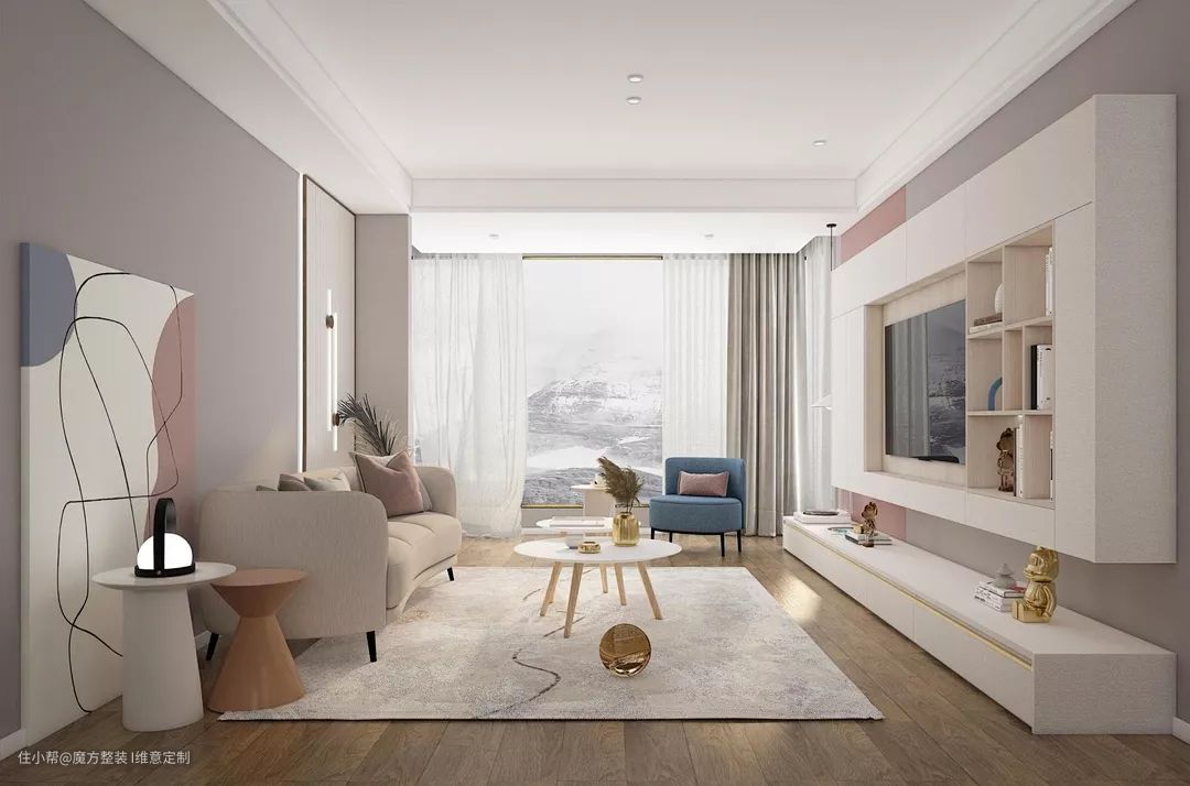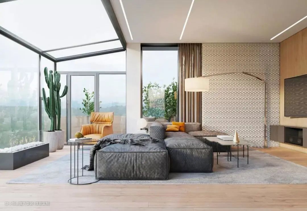 客厅阳台一体化的设计,不仅能有效改善采光,还增加了室内的活动空间,让客厅的功能性有了更多可能。