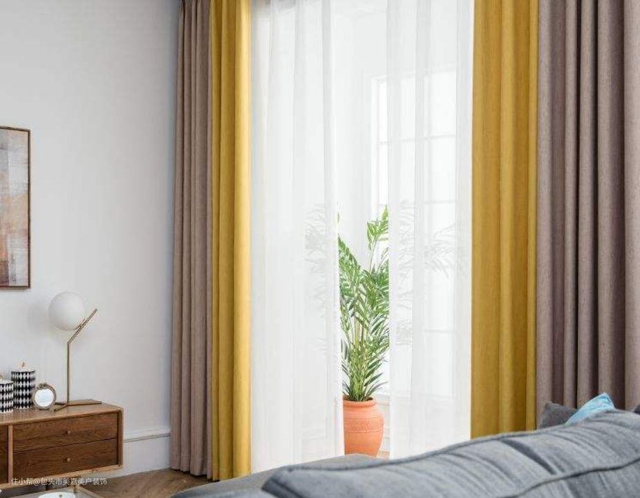 2、棉麻窗帘:市面上很多号称棉麻的窗帘,其实是棉麻涤纶混纺的,表面看起来有点像麻布,质感上也有一点麻布的质感,这种窗帘的垂度和遮光性都比亚麻窗帘要好。